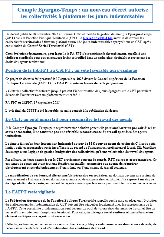 Par : sitefa37 24 janvier 202527 janvier 2026 Non classé Communiqués FA Nouveau décret concernant le CET … Partager : Partager sur X(ouvre dans une nouvelle fenêtre) X Partager sur Facebook(ouvre dans une nouvelle fenêtre) Facebook J’aime chargement… Similaire
